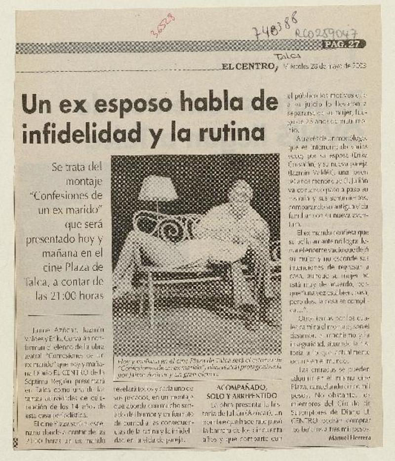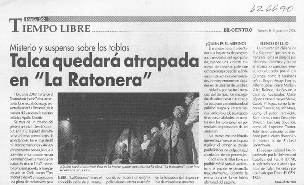 Novela de escritora mexicana inspira obra de teatro talquina. [artículo] Manuel Herrera