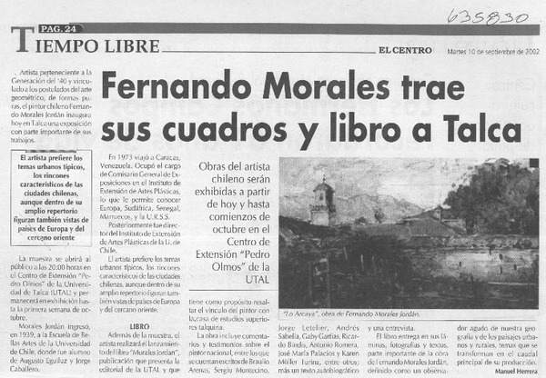 Fernando Morales trae sus cuadros y libro a Talca [artículo] Manuel Herrera