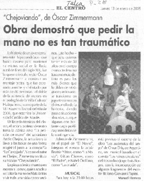 Obra demostró que pedir la mano no es tan traumático [artículo] Manuel Herrera.