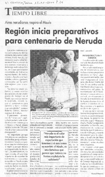 El Centenario de Neruda entra en tierra derecha. [artículo] Manuel Herrera