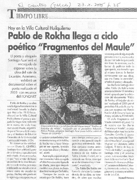 Antologlía suma obras de dos poetas maulinos [artículo]Manuel Herrera.