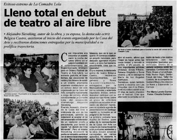 Lleno total en debut de teatro al aire libre [artículo] María Loreto Correa.
