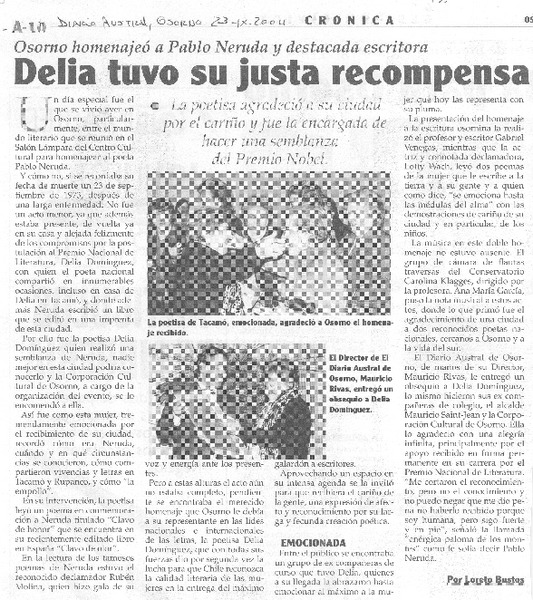 Delia tuvo su justa recompensa [artículo] Loreto Bustos
