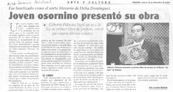 Joven osornino presento su obra. [artículo] Loreto Bustos