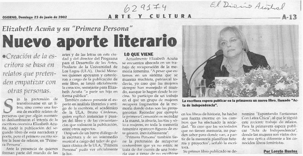 Autores chilenos - Acuña, Elizabeth - Primera persona