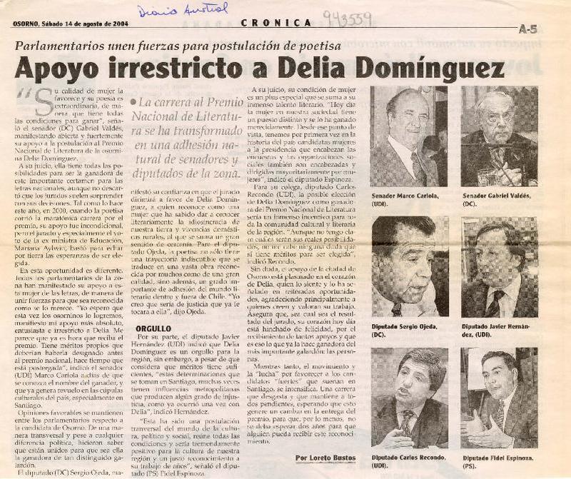 Apoyo irrestrico a Delia Domínguez [artículo] Loreto Bustos.