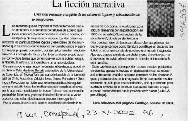 Autores chilenos - Martínez Bonati, Félix - Ficción narrativa