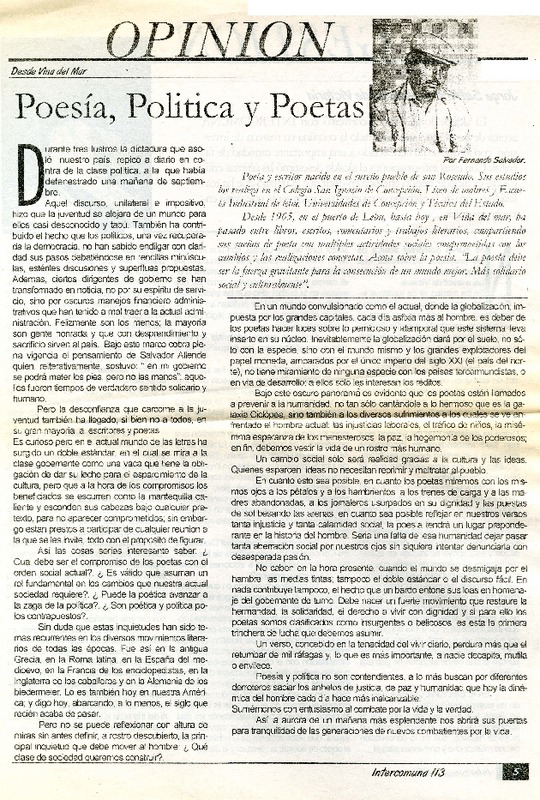 Poesía, política y poetas [artículo] Fernando Salvador.