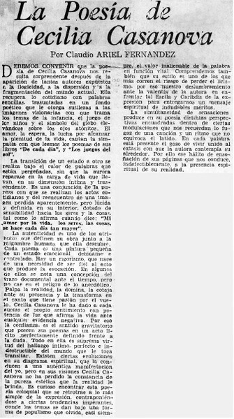 La poesía de Cecilia Casanova [artículo] Claudio Ariel Fernández.