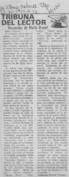 Recuerdos de Marta Brunet [artículo] Guillermo Berndt Vivanco.