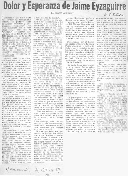 Dolor y esperanza de Jaime Eyzaguirre [artículo] Sergio Guilisasti Tagle.
