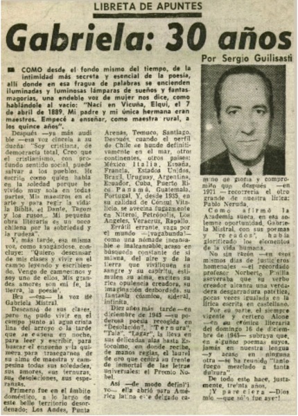 Gabriela: 30 años [artículo] Sergio Guilisasti.