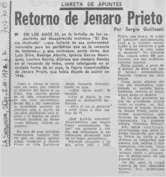 Retorno de Jenaro Prieto [artículo] Sergio Guilisasti.