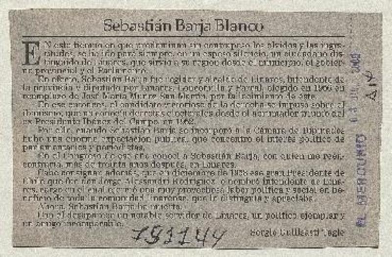 Sebastián Barja Blanco [artículo] Sergio Guilisasti Tagle.