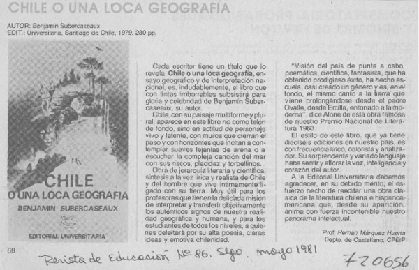 Chile o una loca geografía [artículo] Hernán Márquez Huerta.