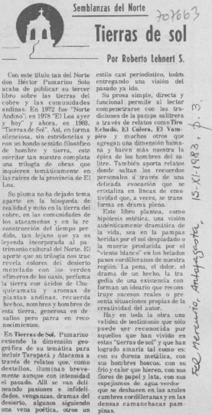 Tierras de sol [artículo] Roberto Lehnert S.