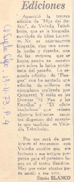 Autores chilenos - Teitelboim, Volodia - Hijo del salitre