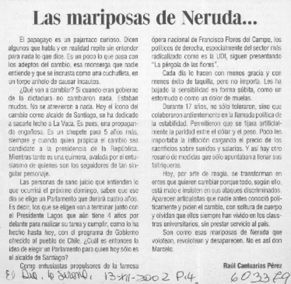 Las mariposas de Neruda [artículo] Raúl Cantuarias Pérez