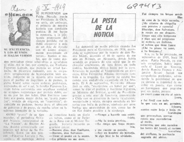 Pista de la noticia [artículo] Sherlock Homes.