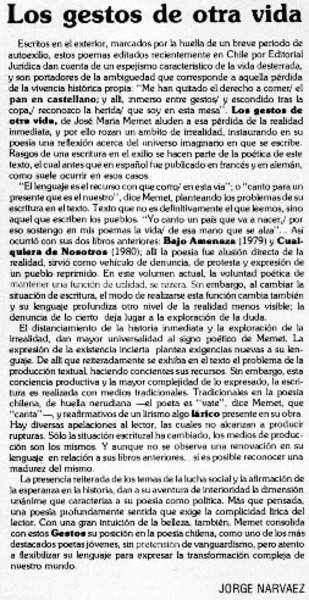 Los gestos de otras vida [artículo] Jorge Narváez.