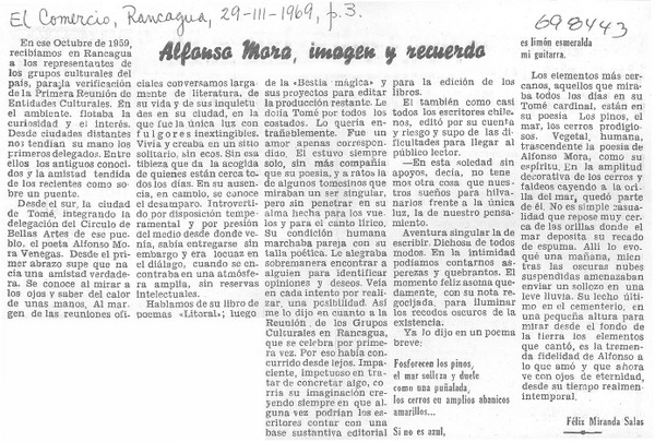 Alfonso Mora, imagen y recuerdo [artículo] Félix Miranda Salas.