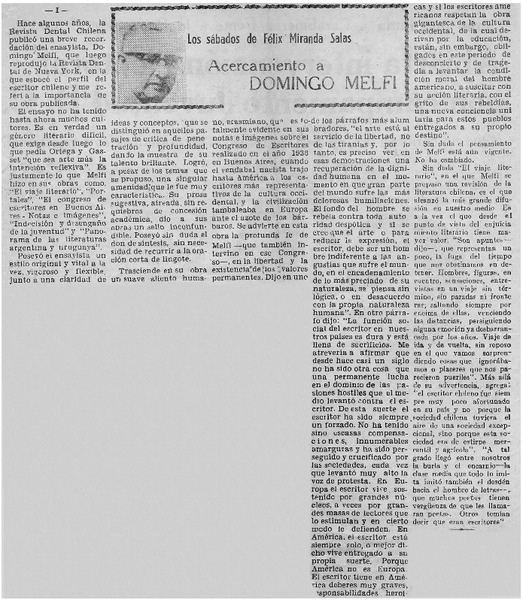 Acercamiento a Domingo Melfi [artículo] Félix Miranda Salas.