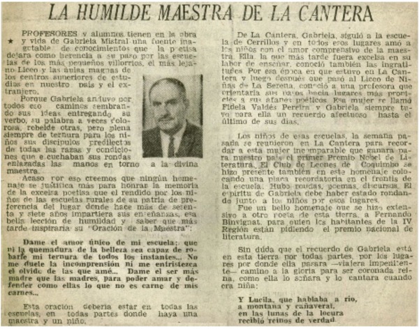 La humilde maestra de la cantera [artículo] Gustavo Rivera Flores.