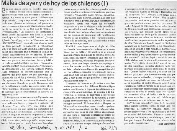 Males de ayer y de hoy de los chilenos (I) [artículo] René Sepúlveda.