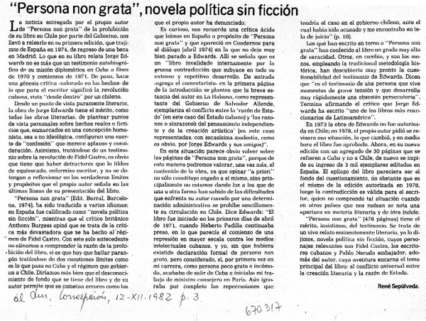 "Persona non grata", novela política sin ficción [artículo] René Sepúlveda.
