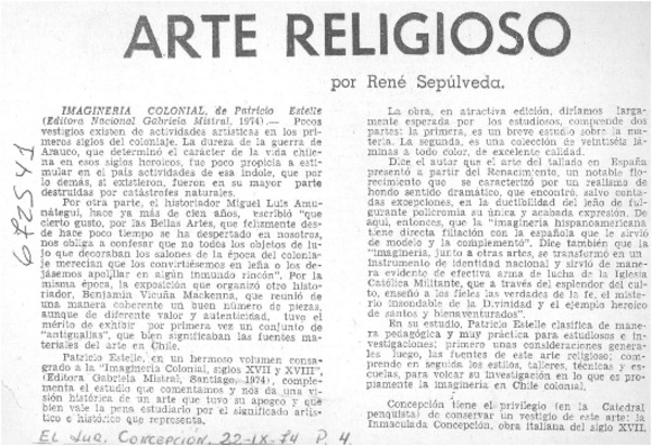 Autores chilenos - Estellé, Patricio - Imaginería colonial