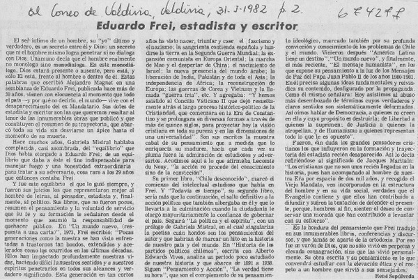 Eduardo Frei, estadista y escritor [artículo] René Sepúlveda.
