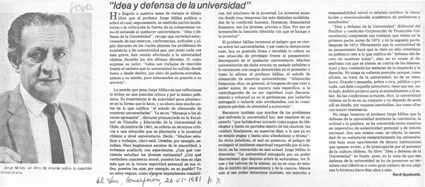 Idea y defensa de la universidad [artículo] René Sepúlveda.