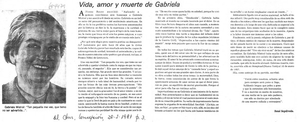 Vida, amor y muerte de Gabriela [artículo] René Sepúlveda.