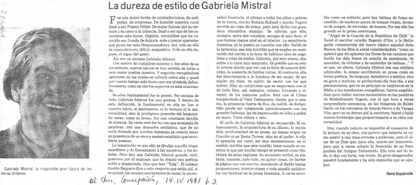 La dureza de estilo de Gabriela Mistral [artículo] René Sepúlveda.