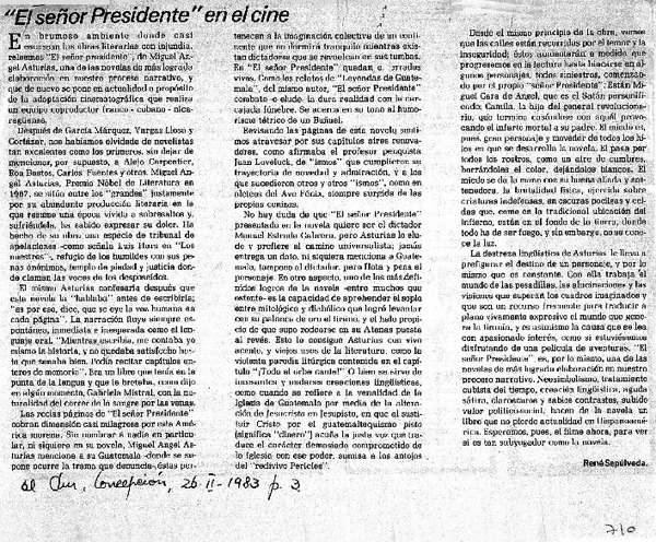 El señor Presidente" en el cine [artículo] René Sepúlveda.