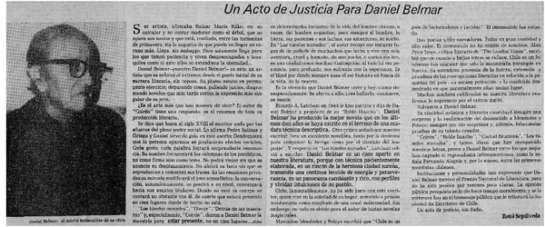 Un acto de justicia para Daniel Belmar [artículo] René Sepúlveda.
