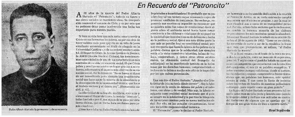 En recuerdo del "Patrocinto" [artículo] René Sepúlveda.
