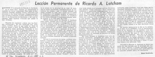 Lección permanente de Ricardo A. Latcham [artículo] René Sepúlveda.
