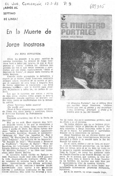 En la muerte de Jorge Inostrosa [artículo] René Sepúlveda.
