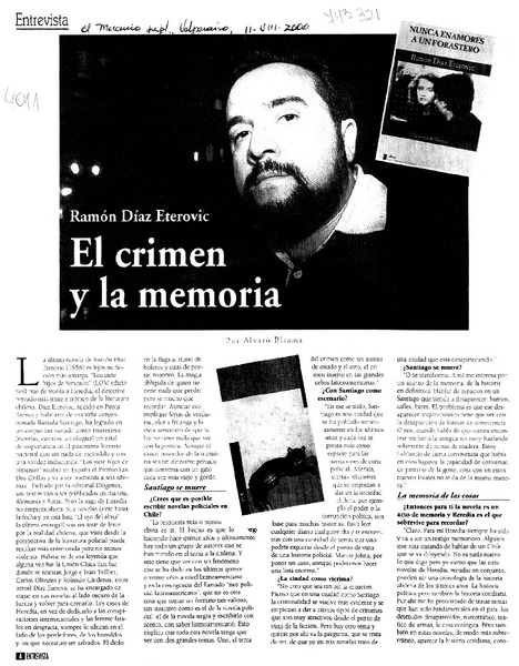El crimen y la memoria : [entrevistas] [artículo] Alvaro Bisama.
