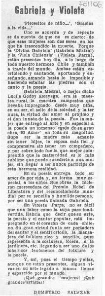 Gabriela y Violeta [artículo] Demetrio Salazar.