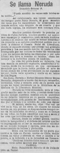 Neruda, Parral y el olvido [artículo] Demetrio Salazar P.
