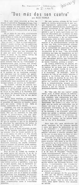 "Dos mas dos son cuatro". [artículo] Alex Varela.