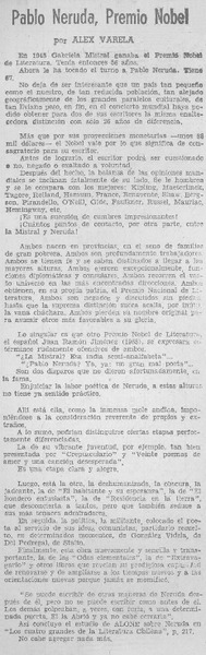 Pablo Neruda, Premio Nobel [artículo] Alex Varela.