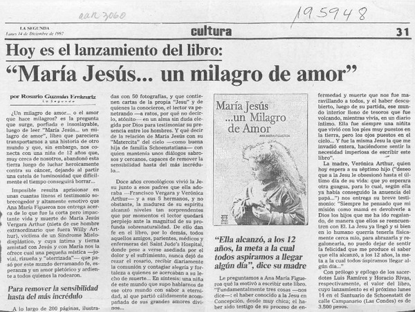 "María Jesús -- un milagro de amor" [artículo] Rosario Guzmán Errázuriz.