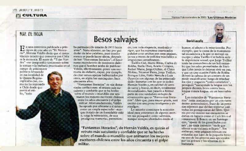 Besos salvajes. [artículo] David Lacalle