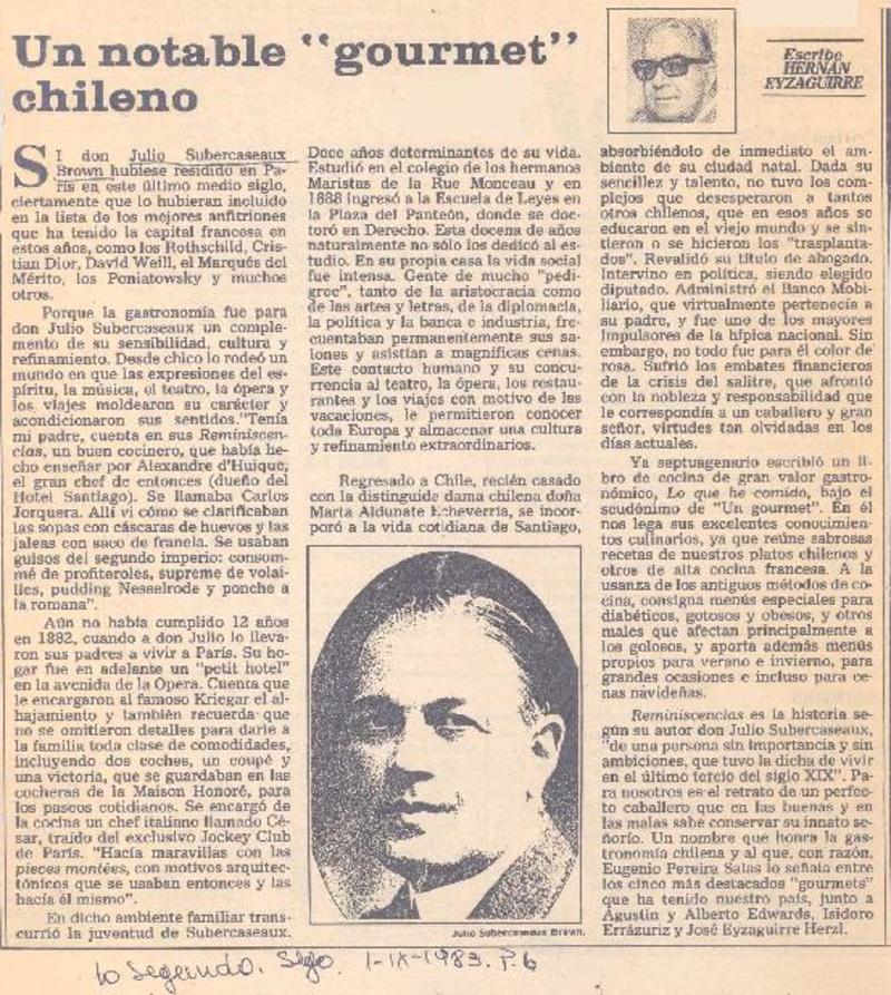 Un gastrónomo notable [artículo] Hernán Eyzaguirre.