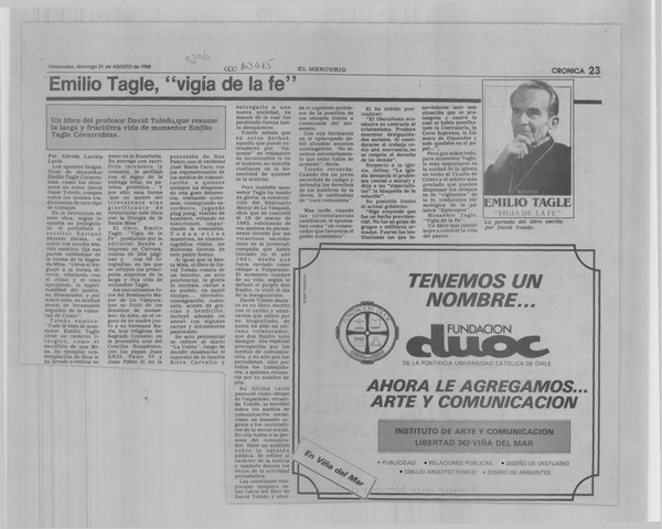 Emilio Tagle, "vigía de la fe" [artículo] Alfredo Larreta Lavín.