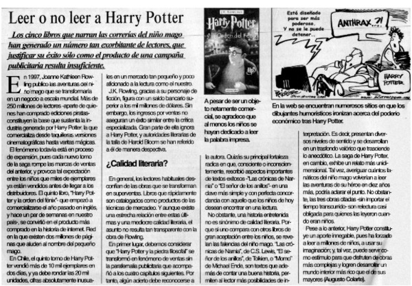 Leer o noleer a Harry Potter [artículo] Augusto Colarte.