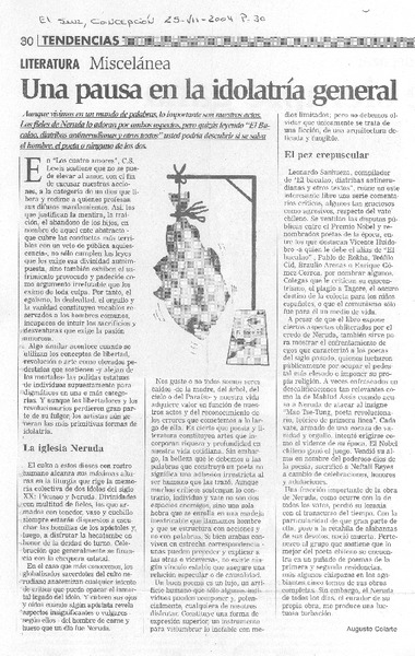 Una pausa en la idolatría general [artículo] Augusto Colarte